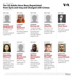 Amerikalı bir yetkili VOA'ye yaptığı açıklamada, ABD'ye getirilen ancak IŞİD'le alakalı iddialarla henüz bir suçlama yöneltilmeyen 17 Amerikalı'dan 15'inin küçük yaşta olduğunu söyledi. Yetkili, diğer ikisinin de, aileleriyle birlikte IŞİD'e katılmaya gittikleri sırada küçük yaşta olduklarını belirtti.
