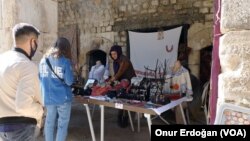 Şerife Aktaş ilçedeki bir lisede resim öğretmeni: “Pandemiden dolayı derslerimizin olmaması bizim de evde bazı üretimler yapmamızı sağladı. Zamanımızı taş boyayarak ya da çeşitli ürünler üzerinde çalışarak, sanatla uğraşarak değerlendirdik. Sonra Taşhan açıldı. Biz de bir stand açıp deneyelim dedik. Böyle bir deneme yaptık ve çok da ilgi gördü. İnsanların sanata ve müziğe ne kadar aç olduklarını gördük”