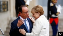 Benzer görüşler Paris’teki ortak basın toplantısında Almanya Başbakanı Angela Merkel tarafından da dile getirildi. Merkel, Avrupa Birliği’nin, zayıflığa ve karşılaşılan zorluklara karşı birlikte hareket etmesi gerekliliğine vurgu yaptı.