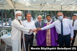 Mersin Büyükşehir Belediye Başkanı Vahap Seçer de birlik mesajları verdi. Seçer “Mersin, içinde bulunduğumuz mezarlıkta görüldüğü gibi, farklı semavi dinlere mensup insanların bir arada uyuduğu, kentin sokaklarında barışın, huzurun, kardeşliğin hakim olduğu bir kent. Biz bunu sonsuza kadar yaşatma azmi içerisindeyiz. Belediyeciliğin ya da bir belediye başkanının yapması gereken işlerin en önüne koyduğum görevim ve sorumluluğum, kentin huzurunu, kentin mutluluğunu, buradaki hemşehrilerimin kardeşçe bir yaşam ve güvence içerisinde, hangi dine mensup olursa olsun, hangi etnik yapıya mensup olursa olsun, bu hemşehrilerimin kendini güven içerisinde hissederek yaşamalarını sağlamaktır. Bu görevi de bugüne kadar olduğu gibi, bundan sonra da yerine getireceğiz” dedi.