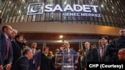 Açıklama Saadet Partisi genel merkezi önünde toplanan büyük kalabalığın karşısında Temel Karamollaoğlu tarafından yapıldı.