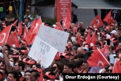 Mersin’de 2018’de yıkılan Tevfik Sırrı Gür Stadyumu’nun yerine yapılan Millet Bahçesi’nin yanındaki caddede düzenlenen mitinge katılım yüksekti. Cadde, sahil tarafındaki girişinden Müftü Köprüsü yakınlarına kadar dolmuştu.
