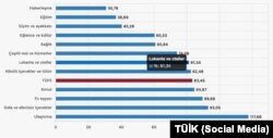 Ulaştırmayı yüzde 93,05 ile gıda ve alkolsüz içecekler, yüzde 89,68 ile ev eşyası, yüzde 84,67 ile konut, yüzde 82,48 ile alkollü içecekler ve tütün, yüzde 81,34 ile lokanta ve oteller takip etti.