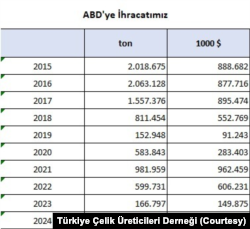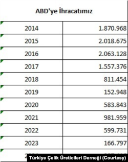 Trump’ın ilk başkanlık döneminde 2017’de Türkiye’den alınacak çelikte gümrük vergisi yüzde 25’e, 2018’deki Rahip Brunson krizinden sonra da yüzde 50’ye yükseltildi. Daha sonra her ne kadar mahkemeye yapılan itiraz sonucu gümrük vergisi yeniden yüzde 25’e düşse de Türkiye, önceki ABD Başkanı Joe Biden döneminde getirilen muafiyetlerden de yararlanamayınca 287 bin tonla ABD’ye çelik ihracatında gerilere düşmüştü.