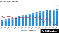 Yıllık nüfus artış hızı 2023 yılında binde 1,1 iken, 2024 yılında binde 3,4’e yükseldi.