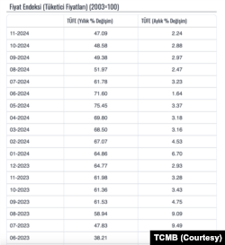 Türkiye Cumhuriyet Merkez Bankası (TCMB) yıl başında yüzde 36 olan yıl sonu enflasyon tahminini Mayıs'ta 38'e, Kasım’da ise 44'e çıkarmıştı. Bankanın 2025 tahmini ise yüzde 14’ten yüzde 21'e yükseldi.