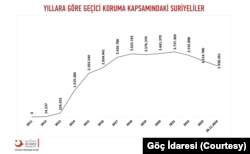 İçişleri Bakanlığı Göç İdaresi’nin en son 28 Kasım’da yayınladığı verilere göre, Türkiye’de geçici koruma statüsü altında yaşayan Suriyeli sığınmacıların sayısı 2 milyon 938 bin 261.