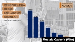Bağımsız bir kurum olan Venezuela Finans Gözlemevi (OVF) verilerine göre ise yıllık enflasyon yüzde 46, 2024 Ocak-Eylül enflasyonuysa yüzde 18,3 oldu. OVF yetkilileri, Eylül ayı enflasyon oranının bir önceki yıla nazaran yüzde 129 daha düşük olduğunu belirtiyor.